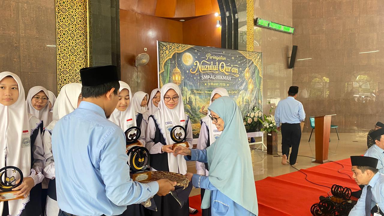 Surabaya, 09 Maret 2026 — Semangat mencintai Al-Qur’an terus tumbuh di kalangan siswa SMP Al Hikmah Surabaya. Pada 10 hari pertama bulan suci Ramadhan, sebanyak 66 siswa dari kelas 7 hingga kelas 9 berhasil menuntaskan tilawah hingga khatam Al-Qur’an. Atas keistiqamahan tersebut, sekolah memberikan apresiasi sebagai bentuk penghargaan dan motivasi bagi para siswa. Apresiasi ini diberikan kepada para siswa yang menunjukkan komitmen dan kedisiplinan dalam menjaga rutinitas membaca Al-Qur’an selama bulan Ramadhan. Kegiatan ini sekaligus menjadi bagian dari upaya sekolah dalam menumbuhkan karakter generasi Qurani yang dekat dengan Al-Qur’an dalam kehidupan sehari-hari.