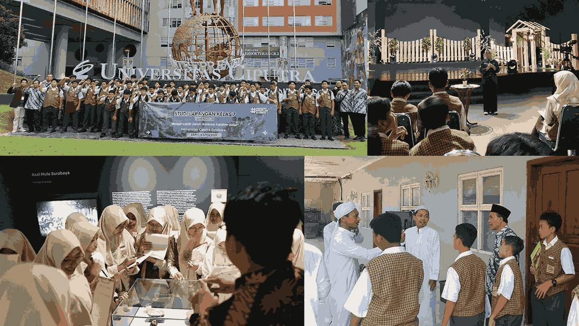 Siswa kelas internasional melakukan eksplorasi sejarah di pusat kota Surabaya. Menariknya, seluruh kegiatan ini dipandu oleh professional guide dengan pengantar bahasa Inggris. Siswa ditantang untuk mendalami nilai sejarah lokal namun tetap dalam perspektif global. Di sisi lain, rombongan Kelas 7 Tahfidz melakukan kunjungan spiritual ke pondok pesantren mitra. Di sana, mereka tidak hanya sekadar berkunjung, tetapi juga mendalami teknik Tahfidz bersama para pakar. Fokus utama mereka hari ini adalah memantapkan kualitas hafalan dan memahami pentingnya menjaga sanad sejak dini. Di kelas Technopreneur mereka belajar lebih mengenal dunia bisnis. Bertempat di Universitas Ciputra (UC), para siswa diajak berfikir kreatif untuk memecahkan masalah melalui ide-ide inovatif. Mentalitas entrepreneur mulai dipupuk sejak dini melalui pengalaman belajar langsung di pusat inovasi tersebut.